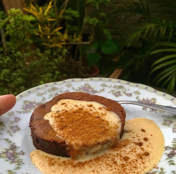 Para fechar com chave de ouro a comemoração entre família e amigos, uma torta de chocolate e creme inglês.