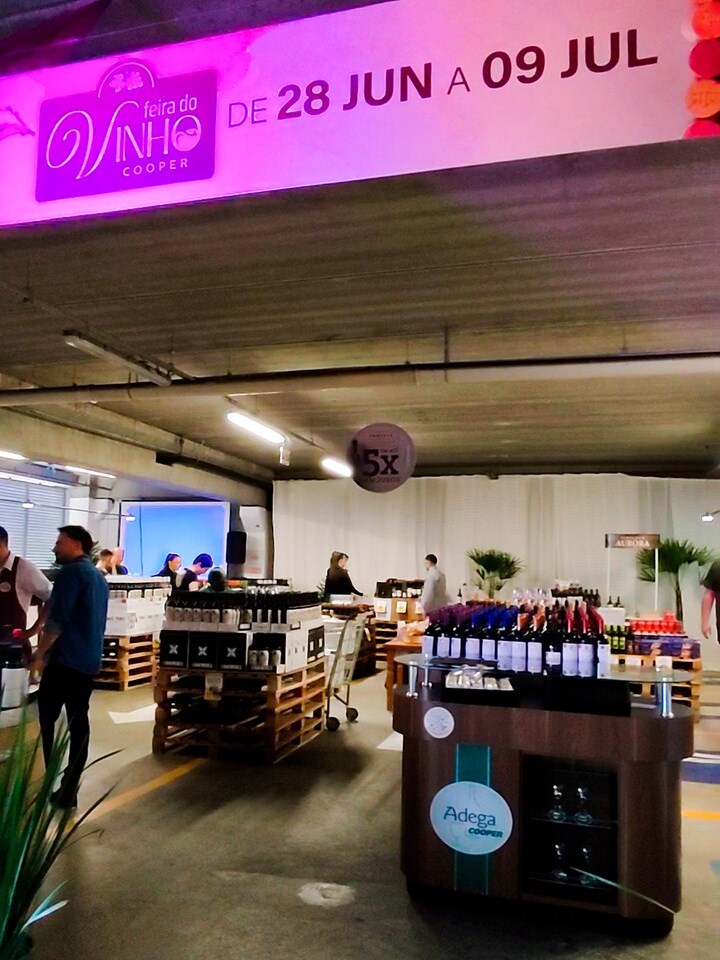 A Rede Cooper promove, durante esta semana, uma Feira de Vinhos na loja Cooper Super Vila Nova, em Blumenau. O evento, que vai até domingo (9/7), está sendo realizado no estacionamento superior da unidade e apresenta uma seleção de vinhos, queijos e itens importados, incluindo massas, molhos e azeites.