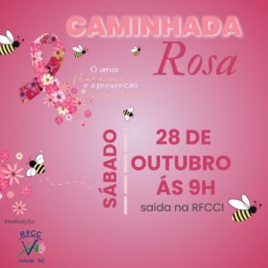 A Rede Feminina de Combate ao Câncer de Indaial convida a comunidade para a Caminhada Rosa, que será neste sábado, dia 28, a partir das 9h, com saída em frente à sede da Rede Feminina de Indaial. O evento faz parte da programação do Outubro Rosa para a conscientização sobre a prevenção do câncer de mama e colo do útero.
