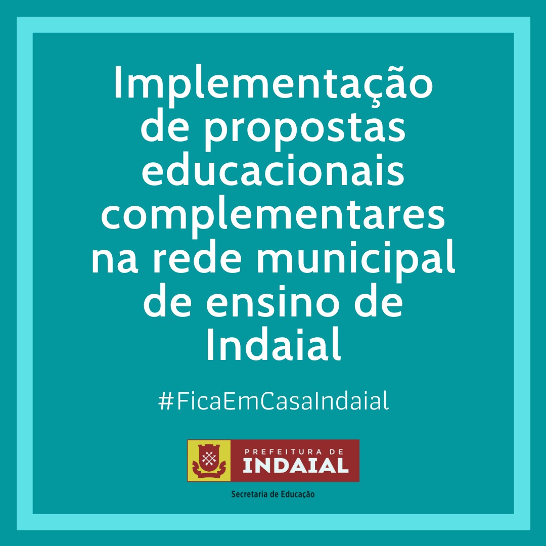 Além disso, a Secretaria irá organizar e disponibilizar no site www.indaial.sc.gov.br/educacao os materiais enviados pelas Escolas Municipais e Unidades de Educação Infantil, como: acervo para leituras, brincadeiras educativas, sugestões de canais educativos e endereços eletrônicos, contendo propostas específicas para cada etapa de ensino, Educação Infantil, Anos Iniciais e Anos Finais. Também irá sugerir atividades visando esclarecer e fomentar a consolidação dos hábitos de higiene para evitar a propagação e contaminação pela COVID-19.