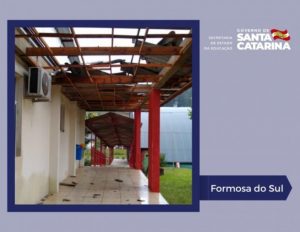 “Mais um fenômeno da natureza que atinge as nossas escolas, muitas das quais estávamos recuperando em função do ciclone. Estamos trabalhando com agilidade no levantamento do nível das avarias para podermos fazer a intervenção o mais rápido possível e deixarmos as nossas escolas em perfeitas condições de uso para quando tivermos o retorno das atividades presenciais”, afirma o secretário de Estado da Educação, Natalino Uggioni.