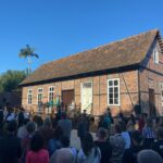 “Foi realizada restauração de toda edificação, incluindo cobertura, paredes e esquadrias, com adaptações para acessibilidade. Foi também construído um anexo com sanitários e feito agenciamento das áreas externas. Além da aquisição de mobiliário para as atividades da Escola de Artes Manuais”, explica Suelen Artuso Rocha, arquiteta do Escritório Técnico da Imigração em Pomerode, da Superintendência do Iphan em SC.