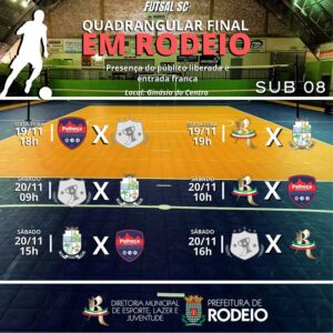 Por ter se classificado na 1ª Colocação para o quadrangular final do Campeonato Catarinense sub 08, Rodeio irá sediar a competição final.