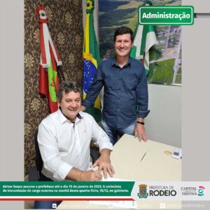 Durante a transmissão de cargo, O Prefeito Valcir Ferrari falou que deposita toda a confiança no vice-prefeito. “Tenho certeza que Rodeio está em boas mãos, Airton esta preparado e tem todas as condições de representar Rodeio durante o período em que estarei em férias , disse.