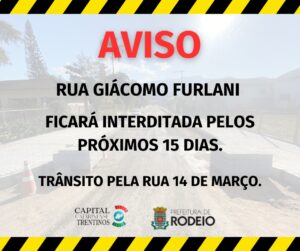 RUA GIÁCOMO FURLANI FICARÁ INTERDITADA NOS PRÓXIMOS 15 DIAS