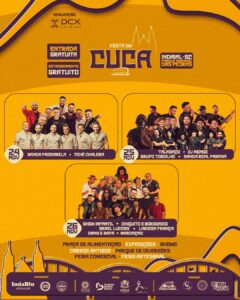 Na programação a grande estrela será apresentada de diversas formas e sabores por produtores locais que irão oferecer as suas versões de cuca em estandes e na praça de alimentação do evento. “Queremos fazer a melhor festa do Sul do Brasil que tem a cuca como carro-chefe, afinal, ela é um prato tão importante para toda a nossa região e temos tanto orgulho dessa iguaria”, afirma o idealizador do evento, Dudu Cunha.