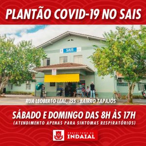 Neste sábado, 21, e domingo, 22, o Sais, no bairro Tapajós, estará aberto das 8h às 17h, exclusivamente, para atendimento a pacientes com sintomas respiratórios como febre, tosse, falta de ar, dor de garganta e coriza.