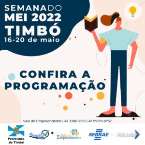 Entre os dias 16 e 20 de maio acontece em Timbó a Semana do MEI, promovida pela Sala do Empreendedor. Para estes cinco dias foram preparadas diferentes atividades voltadas para os microempreendedores do município. Confira a programação: