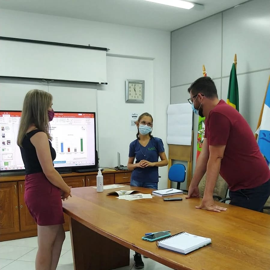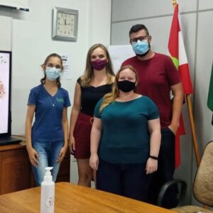 Carla Tatiana Raduenz Geisler e a estagiária do setor técnico, Maike Letícia Link. Eles se reuniram junto à Natália Ana Bauer, que é Analista Ambiental Jr. da Euro Ambiental, empresa responsável por fazer os levantamentos, análises e estudos do programa.