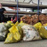 Na composição feita hoje, onde nove embalagens de reciclado e uma de rejeito foram analisadas, com algumas situações pontuais de descarte incorreto que já foram alertadas, para que sejam corrigidas.