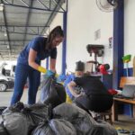 “O primeiro passo foi fazer a composição gravimétrica, que consiste em colher os residuários, abrir tudo e separar orgânico, plástico, papel, enfim, cada resíduo. Em seguida pesamos, para ver qual é o percentual de mistura que há e, com base nisso, damos início aos próximos passos, que são o treinamento e reeducação, buscando alcançar a diminuição de até 90% de resíduos que seriam encaminhados ao aterro”, esclarece Fernanda.