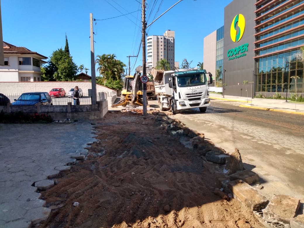 A previsão é que o trecho esteja concluído em 15 dias. Em seguida, serão reconstruídas as calçadas no local, no novo padrão, a colocada a camada asfáltica na via.