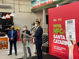 Também estiveram presentes no evento o secretário de Estado da Fazenda, Paulo Eli, e o Governador de Santa Catarina, Carlos Moisés. O Governador destacou que a NFC-e era um pedido de sua administração ao setor fazendário do Estado e que a implementação trará mais justiça fiscal, evitando também a sonegação de impostos. “Essa nota vai trazer a possibilidade de a Fazenda trabalhar com tecnologia e inovação. Ao mesmo tempo, vai facilitar a vida de quem empreende. Iniciamos um projeto piloto com 20 empresas, que terão mais facilidade para prestar as suas contas ao Fisco. A NFC-e também trará muitas pessoas à formalidade no futuro, diminuindo custos para a emissão dos cupons”, disse Moisés durante o evento.
