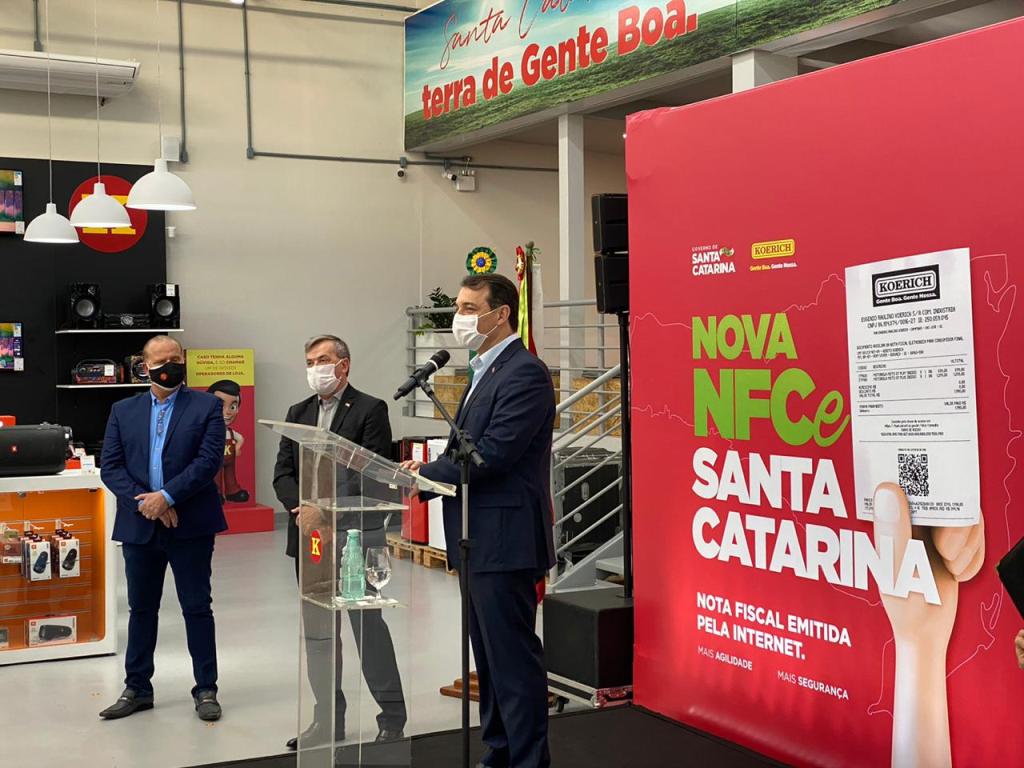 O estado de Santa Catarina passa a aderir a emissão da nota fiscal de consumidor eletrônica (NFC-e), fazendo parte do processo de digitalização do varejo. A estreia da NFC-e catarinense aconteceu nesta terça-feira (04), na MEGA LOJA Koerich, primeira empresa a aderir e emitir a nota fiscal de consumidor eletrônica no Estado, em São José, na grande Florianópolis.