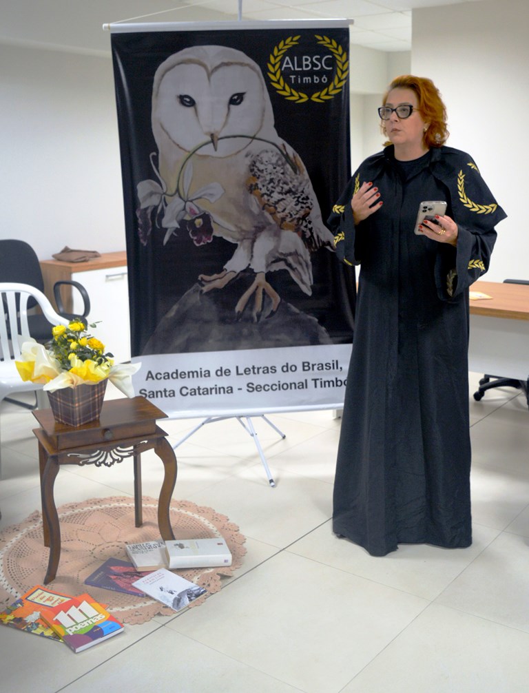 A Acadêmica Gilmara Goulart mediou o Sarau que contou com a participação de 21 pessoas. A presidente da ALBSC- Seccional Timbó, Juci Nones disse ser “uma honra estar aqui no Sarau Literário Viva Poesia e presenciar este momento tão importante para a cultura e a literatura de nossa cidade e região”. Destacou que a Academia de Letras é uma instituição que tem como objetivo preservar, incentivar a leitura e a escrita do nosso país. Este sarau é um exemplo disso, permitindo que os escritores e poetas mostrem seu talento e compartilhem sua sabedoria com o público. A literatura é um reflexo da alma humana, e por meio dela podemos aprender sobre o mundo ao nosso redor, expandir nossa visão de mundo, sentir coisas que nunca imaginamos e nos relacionar com o outro. É através da escrita que muitos autores constroem universos únicos, que tocam nossos corações e nos fazem refletir sobre a vida”.