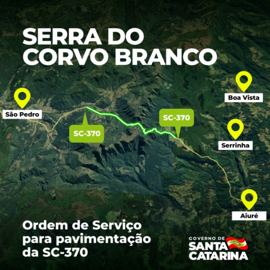 O governador anunciou que, nos próximos dias, terão início os trabalhos para recuperar um trecho desmoronado da SC-370, nas proximidades da serra. Ele também deu o pontapé inicial para o próximo grande avanço. “Já conversei com o Thiago Vieira (secretário de Estado da Infraestrutura e Mobilidade) para que possamos, o quanto antes, contratar o projeto de um túnel, por onde poderão passar veículos pesados, já que a grande vocação da Serra do Corvo Branco é o turismo”, antecipa Carlos Moisés.