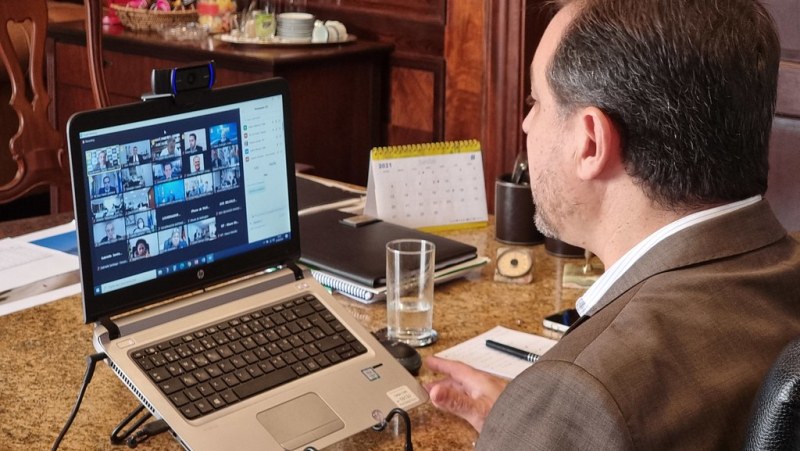 O governador Carlos Moisés participou na manhã desta segunda-feira, 23, por videoconferência, da reunião do IX Fórum Nacional de Governadores. Em sua manifestação, o governador catarinense reforçou a necessidade de diálogo e se posicionou contrário à comunicação por cartas. Sugeriu uma reunião presencial com Governo Federal e demais órgãos e Poderes para a discussão dos interesses do país, estados e municípios.