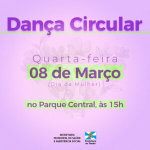 A Secretaria de Saúde de Timbó promove nesta quarta-feira, dia 08 de março, Dança Circular alusiva ao Março Lilás, um mês de conscientização e combate ao Câncer de Colo de Útero.