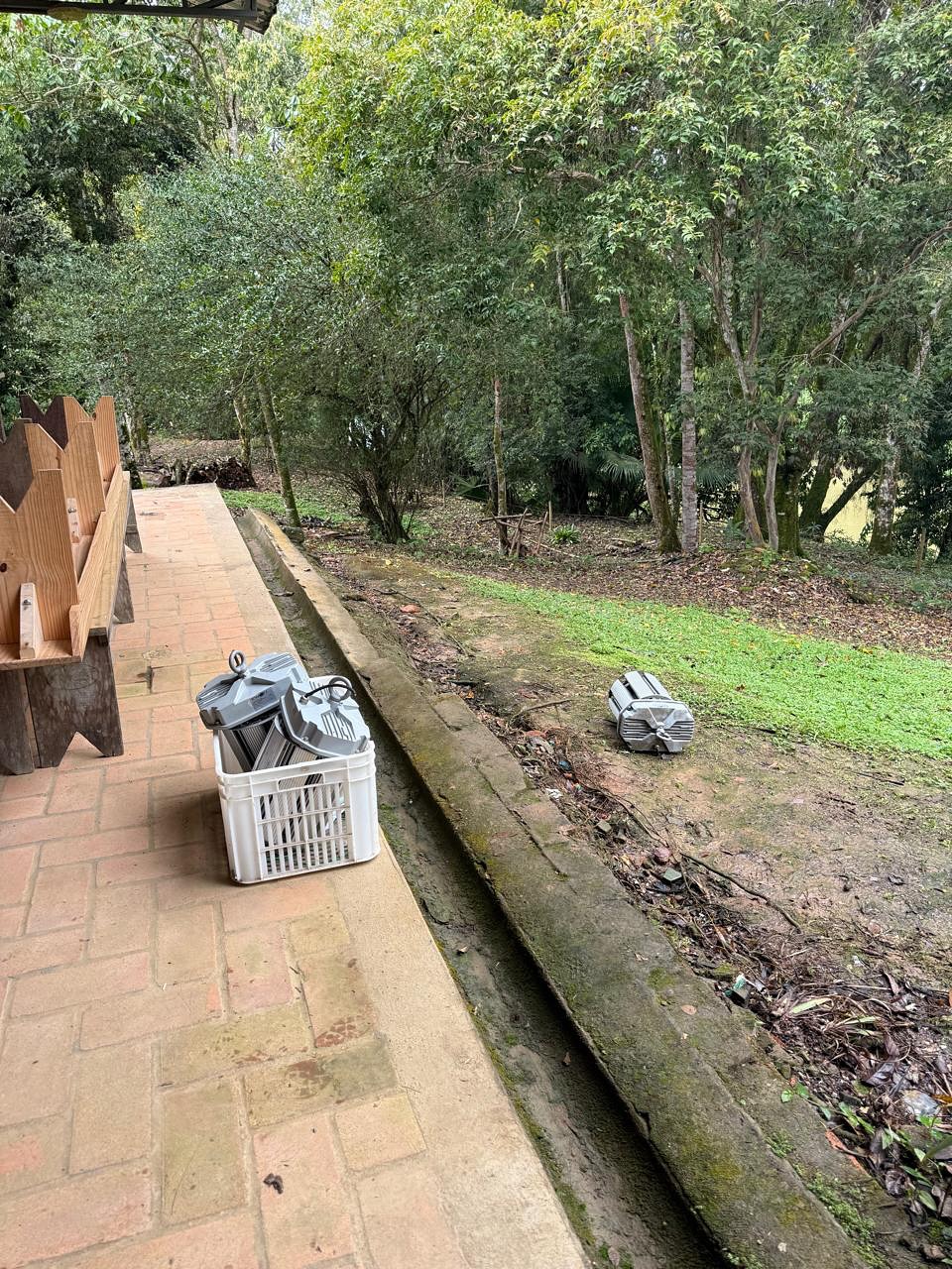 Durante a vistoria realizada no local, voluntários encontraram ainda um botijão de gás e materiais de limpeza escondidos às margens do rio, próximos à casinha da antena. A suspeita é de que os itens tenham sido deixados separados pelos invasores para serem buscados posteriormente.