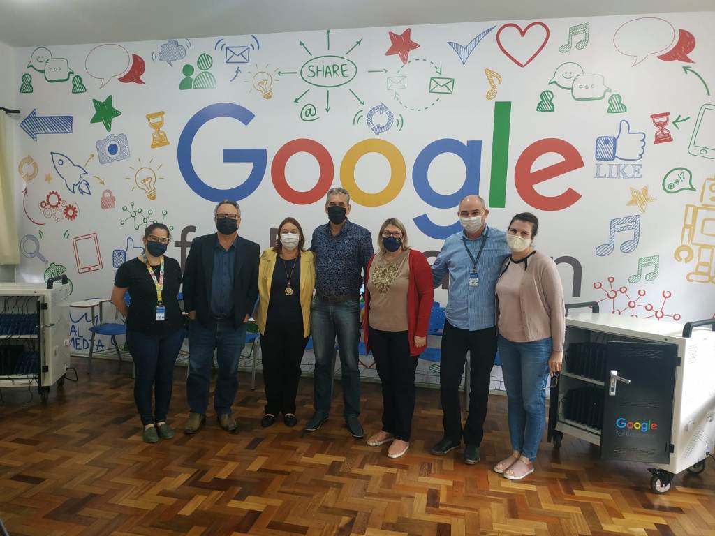 Eles estiveram na Secretaria Municipal de Educação (SEMED) e foram conhecer o projeto Google for Education na Escola Municipal Padre Martinho Stein.