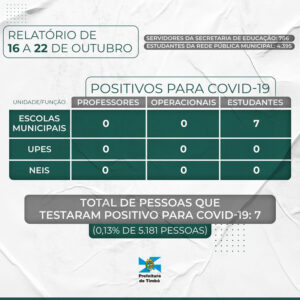 Semed Timbó divulga relatório de casos da Covid-19 na rede pública municipal de ensino – 16 a 22/10/2021