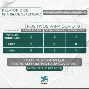 Semed Timbó divulga relatório de casos da Covid-19 na rede pública municipal de ensino