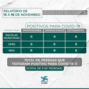 Semed Timbó divulga relatório de casos da Covid-19 na rede pública municipal de ensino