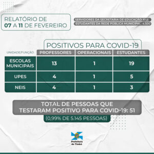Total de pessoas que testaram positivo para Covid-19: 51 (0,99% de 5.145 pessoas)