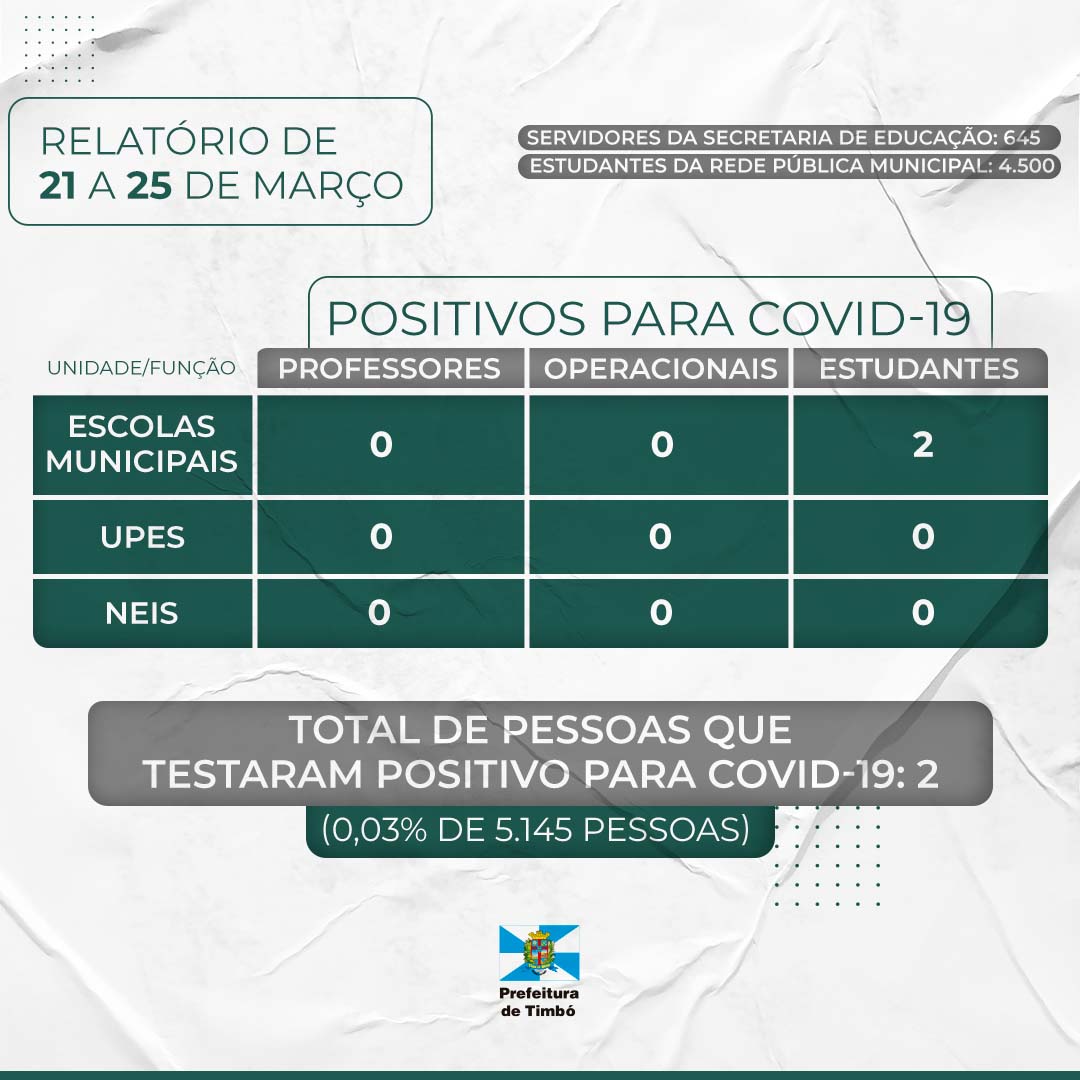 Semed Timbó divulga relatório de casos da Covid-19 na rede pública municipal de ensino