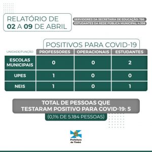 Semed Timbó divulga relatórios de casos da Covid-19 na rede pública municipal de ensino