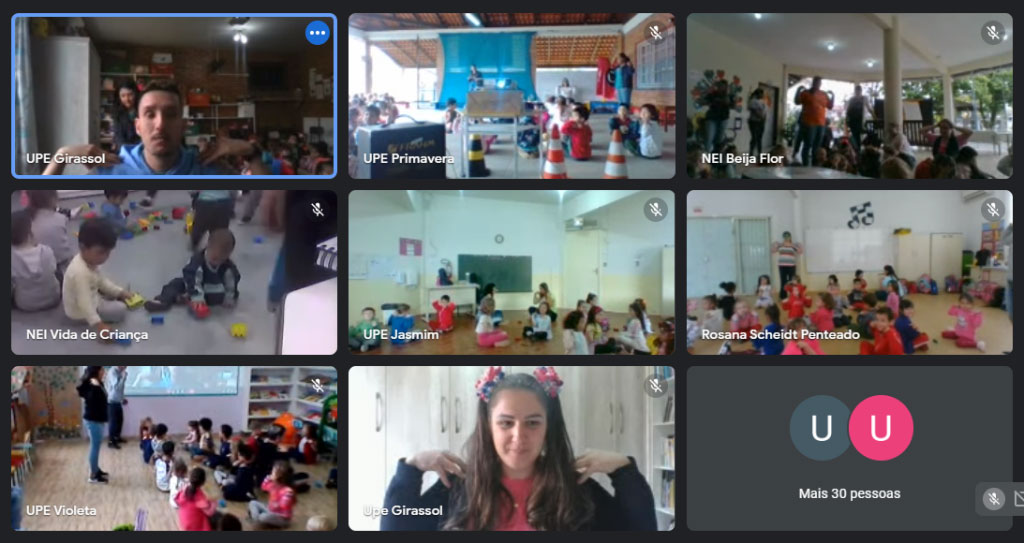 Estão sendo realizadas experiências propostas pelos professores de Recreação e Musicalização, integrando todas as crianças de Núcleos de Educação Infantil (NEIs) e Unidades Pré-Escolares (UPEs), através do Google Meet. Uma das novidades para o Circuito deste ano foi a inclusão dos bebês e as crianças bem pequenas dos NEIs na programação, que antes era voltada somente para as crianças das UPEs.