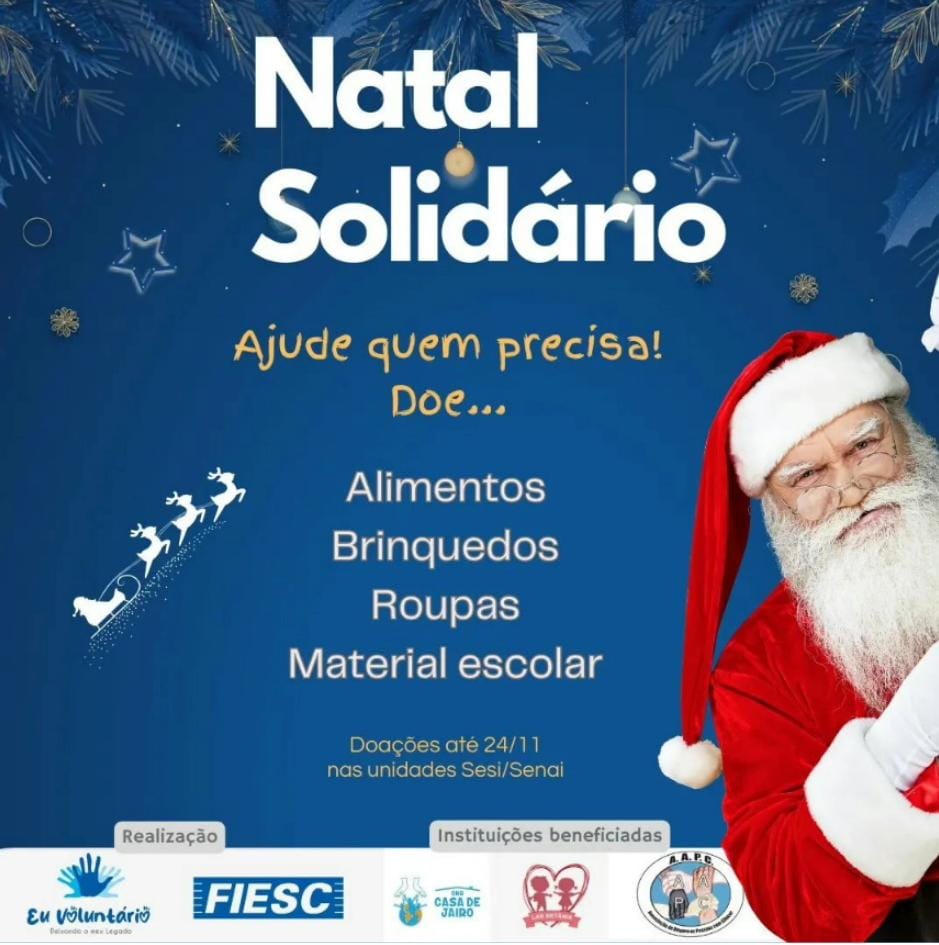 O Natal Solidário 2023 acontece no dia 2 de dezembro, das 9h às 12h no SENAI Blumenau e vai receber e presentear crianças da Associação Assistencial Lar Betânia, da Casa de Jairo e da Associação de Amparo às Pessoas com Câncer.