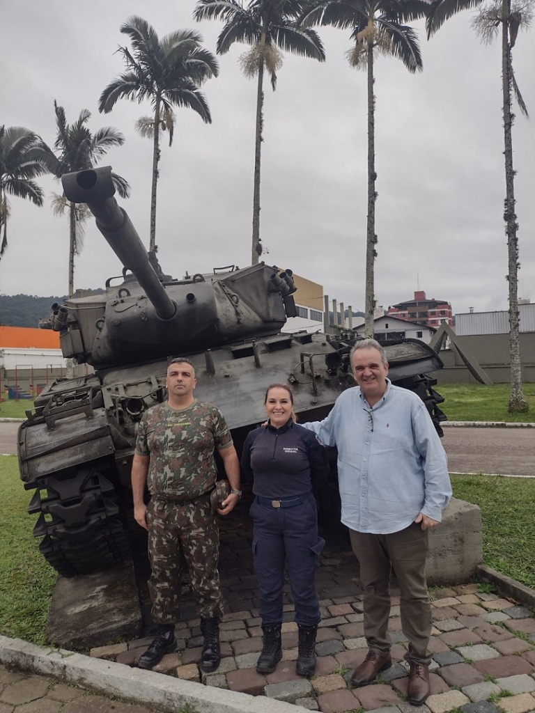 Na manhã desta quinta, 21, o secretário de Planejamento de Indaial, Fabiano dos Santos, e a diretora de Trânsito, Sheila Almeida, realizaram uma visita ao Batalhão de Infantaria “Jacintho Machado de Bittencourt”, na cidade de Blumenau. No 23º BI foram recepcionados pelo subcomandante, Tenente-Coronel Leonardo Vagner do Nascimento Moreira, chefe da 1ª Seção, Capitão José Jader Rodrigues de Lima Júnior, e adjunto da seção de Comunicação Social, 1º Sargento Rodrigo Castanheira de Almeida.