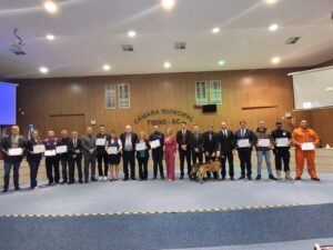 Policiais Civis e Militares: 2º Sargento Sandro Heloi Fink, Cabo Leandro Rafael Ferigotti, Cabo Agnaldo Ribeiro de Melo, Soldado Danilo de Toledo Cesar, Soldado Luisa Aguilar Lopes, Soldado Rafael Faria Rodrigues, 1º Sargento Maicon Otto, 3º Sargento Ademir Rocha, Cabo Mauricio Fogaça, Soldado Liliane Ern, Soldado Erickson Allan Bine Razera, Soldado Thiago Moratelli, Cabo Anderson Paulo Stadtlober, Cabo Leonardo Felipe Reinert, Cabo Matheus Nogueira de Souza Oliveira, Soldado Andre Lopes Couto, Soldado Caroline Louise Floriani, Cabo Ricardo Kirschner de Oliveira, Cabo Diogo Cristiano Pinto, Tenente Coronel Mario Elias, 1º Tenente Felipe Peixoto Chaves, e aos Agentes de Polícia Ailton Ventura Barreto da Silva, Kimberlly Naomi Okuda, Rodrigo Yoshiharu Minoda e Stefan Doege, pela atuação honrosa e destacada que, com grande agilidade e eficiência, contribuíram para a efetiva prisão em flagrante dos homens envolvidos naquele crime, bem como por exporem constantemente suas próprias vidas para resguardar a vida e a segurança da população. Moção de autoria do vereador Carlos Adriano Krüger.