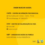 Centro de Atenção Psicossocial (CAPS) de Timbó, ligue ou mande mensagem para 3382-8473