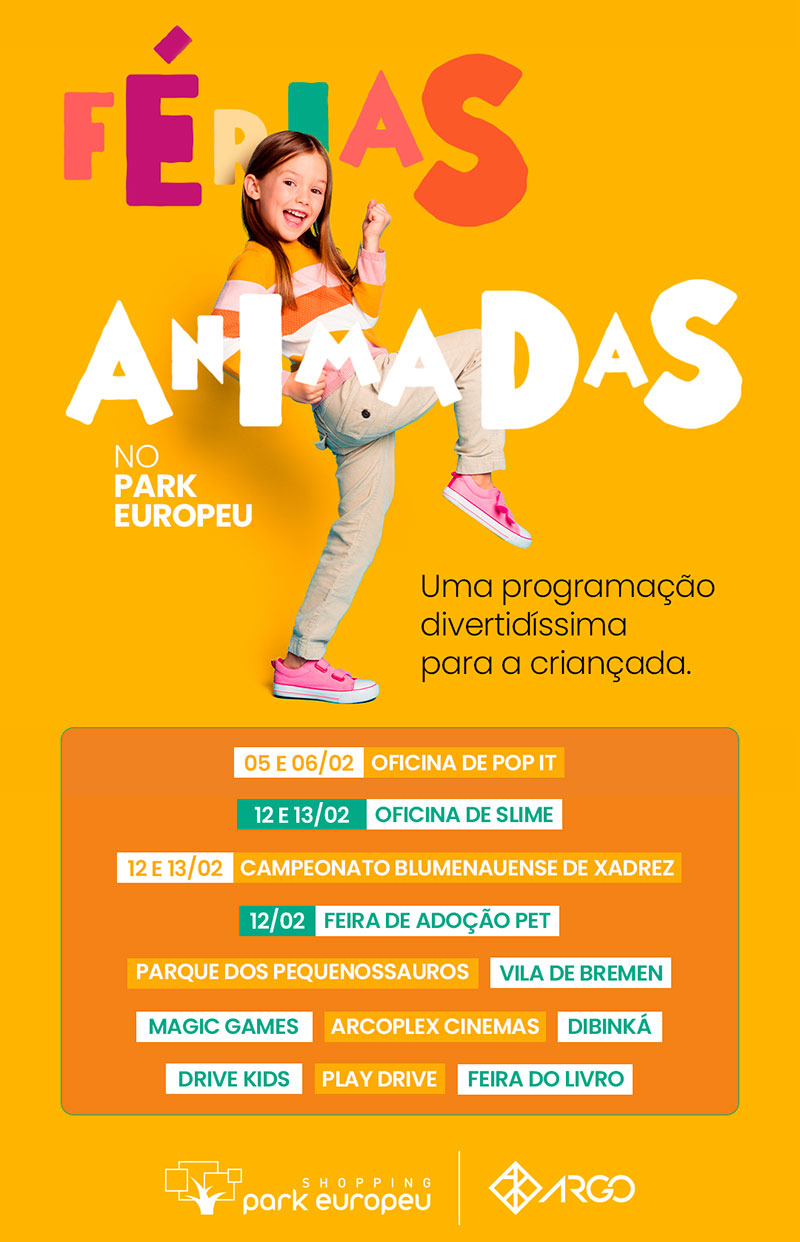 Para quem desejar encerrar de forma divertida as férias da criançada, o Shopping Park Europeu, preparou uma programação especial. No total, serão 13 dias de muitas brincadeiras educativas e divertidas para a garotada.
