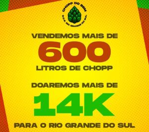 O Chopp do Bem, evento solidário em prol dos atingidos pelas chuvas no Rio Grande do Sul, promovido pela Associação Vale da Cerveja no sábado (11/5), arrecadou R$ 15.303,41. Descontando as despesas geradas com o evento, o valor repassado ao estado vizinho será de R$ 14.378,41. A ação foi realizada no Bier Vila, localizado no Empório Vila Germânica, e contou com forte presença do público, que degustou vários estilos de chope das cervejarias da região e ainda pôde ajudar as milhares de famílias gaúchas que precisam de recursos para se reerguer.