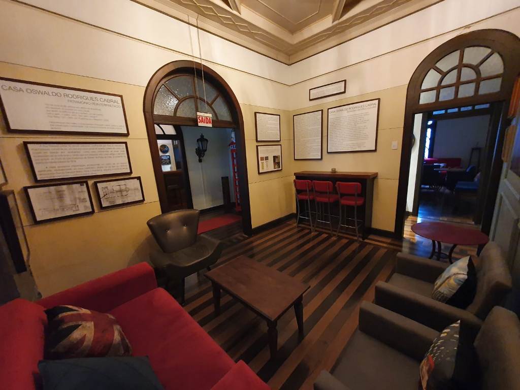 A casa original: Construída pelo próprio dr. Oswaldo Rodrigues Cabral entre as décadas de 1940 e 1950, o casarão, com estilo neocolonial hispano-americano, tem preservado até hoje, suas características originais, como o portal de entrada, o piso de mogno e as paredes com suas cores da fundação.