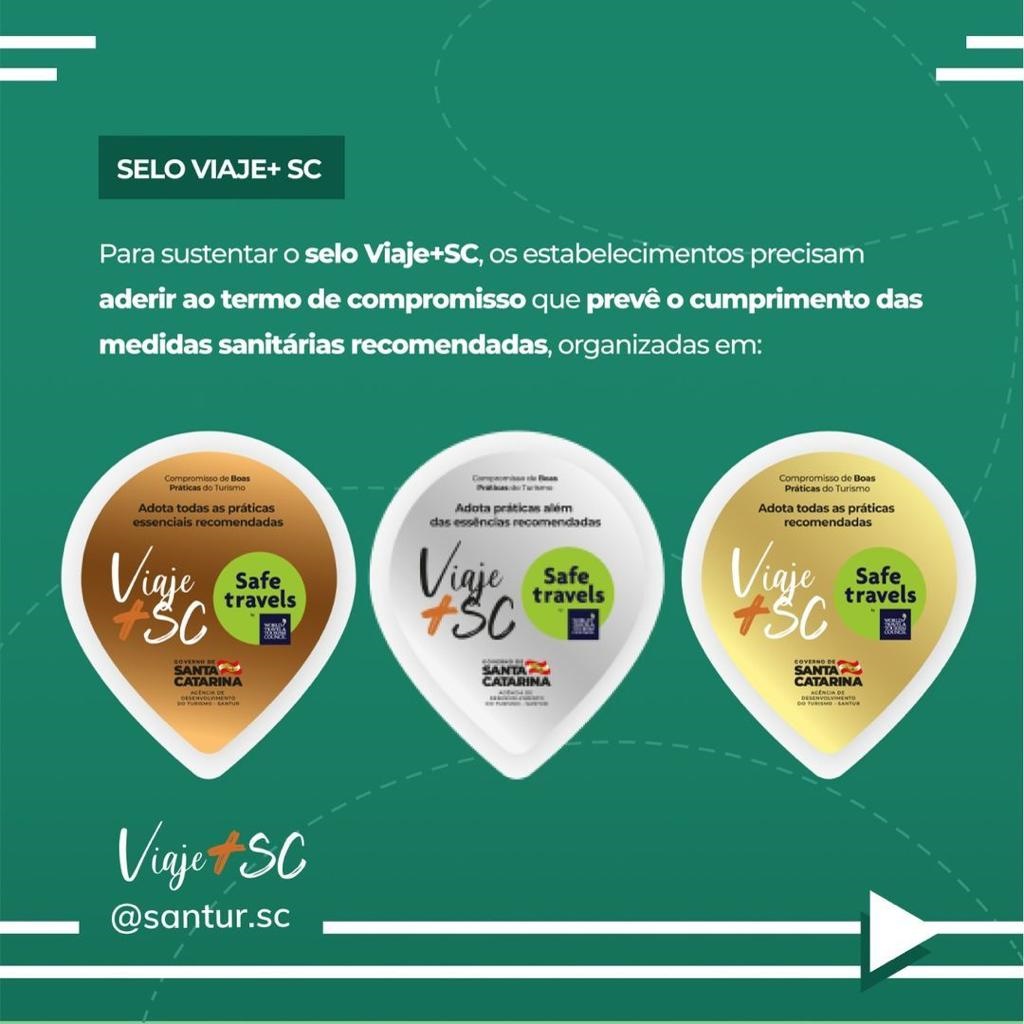 Para obter os selos Viaje+SeguroSC e Safe Travels, os empreendedores devem fazer o cadastro no site viajemais.sc.gov.br e realizar o procedimento de auto checagem, atendendo aos requisitos mínimos de segurança. Também, podem buscar as orientações diretamente com a Secretaria Municipal de Cultura, Juventude e Turismo, pelo telefone: (048) 99915-0254.