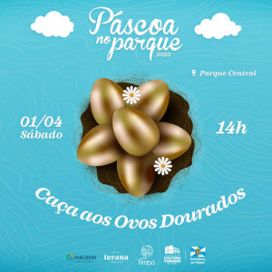 No sábado, dia 01 de abril, traga a família para se divertir no Parque Central na Caça aos Ovos Dourados.