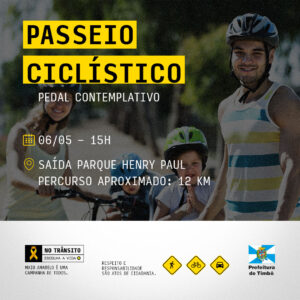 O passeio vai percorrer aproximadamente 12 km, nas principais vias com ciclofaixa do município. As inscrições devem ser feitas previamente, através do formulário disponível aqui: https://bit.ly/bikemaioamarelotimbo