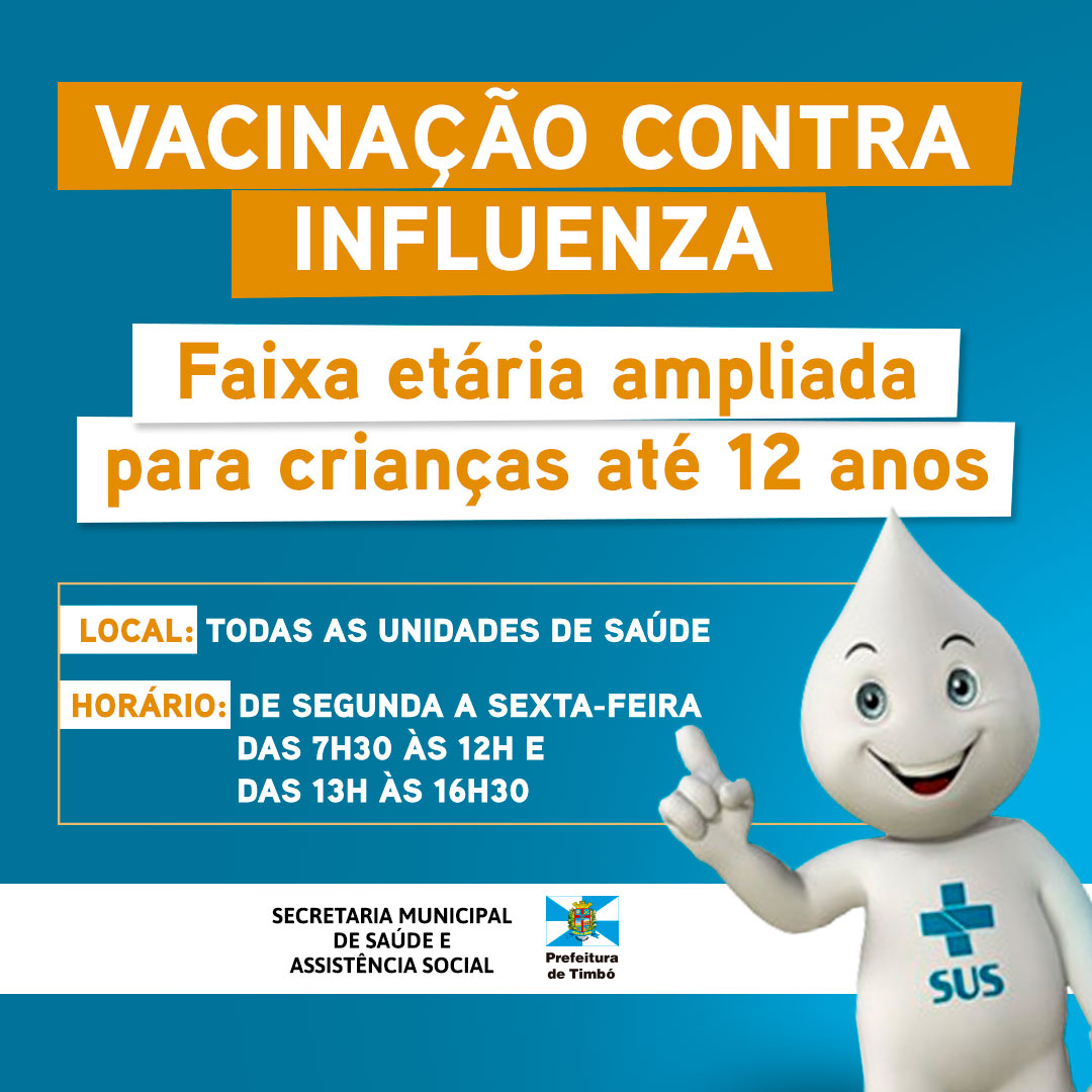 Timbó amplia faixa etária da vacinação contra a Gripe para criança até 12 anos