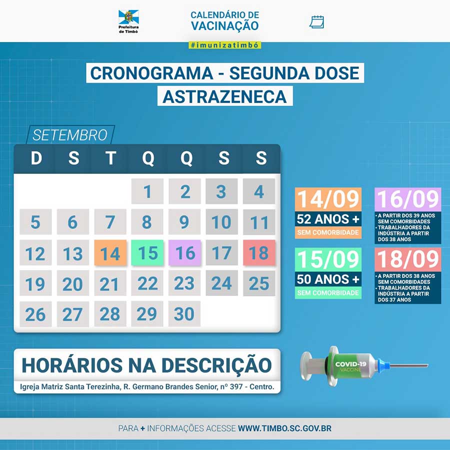 Timbó – Confira o cronograma da segunda dose da vacina da Covid-19