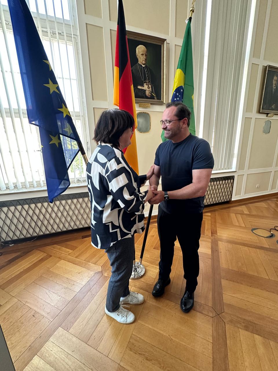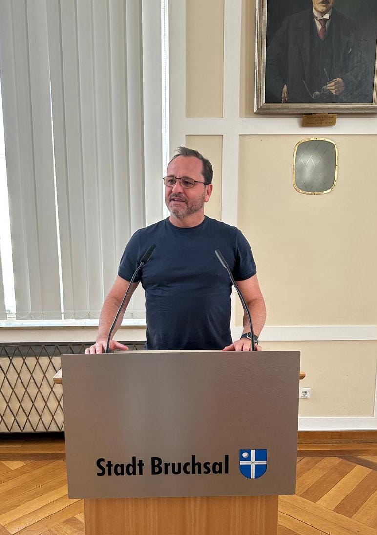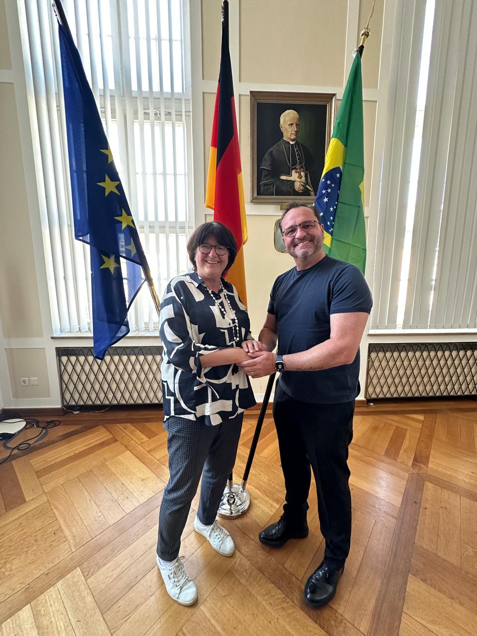 A recepção aconteceu a convite da prefeita Cornelia Petzold-Schick, com quem o prefeito de Timbó manteve um diálogo produtivo sobre possíveis caminhos de cooperação institucional entre as duas cidades. Bruchsal integra a Região Tecnológica de Karlsruhe e a Região Metropolitana do Reno-Neckar, sendo reconhecida por sua forte atuação em áreas como educação, gestão pública eficiente, sustentabilidade e desenvolvimento econômico com base tecnológica – temas que também são prioridade em Timbó.