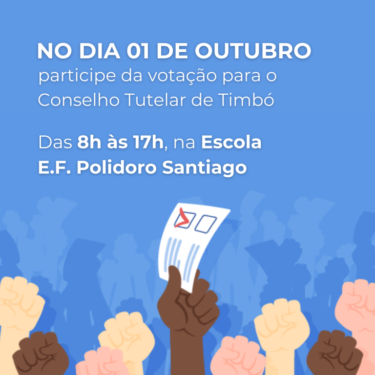 No domingo, dia 01 de outubro, acontece a eleição que irá escolher novos membros para o Conselho Tutelar de Timbó.