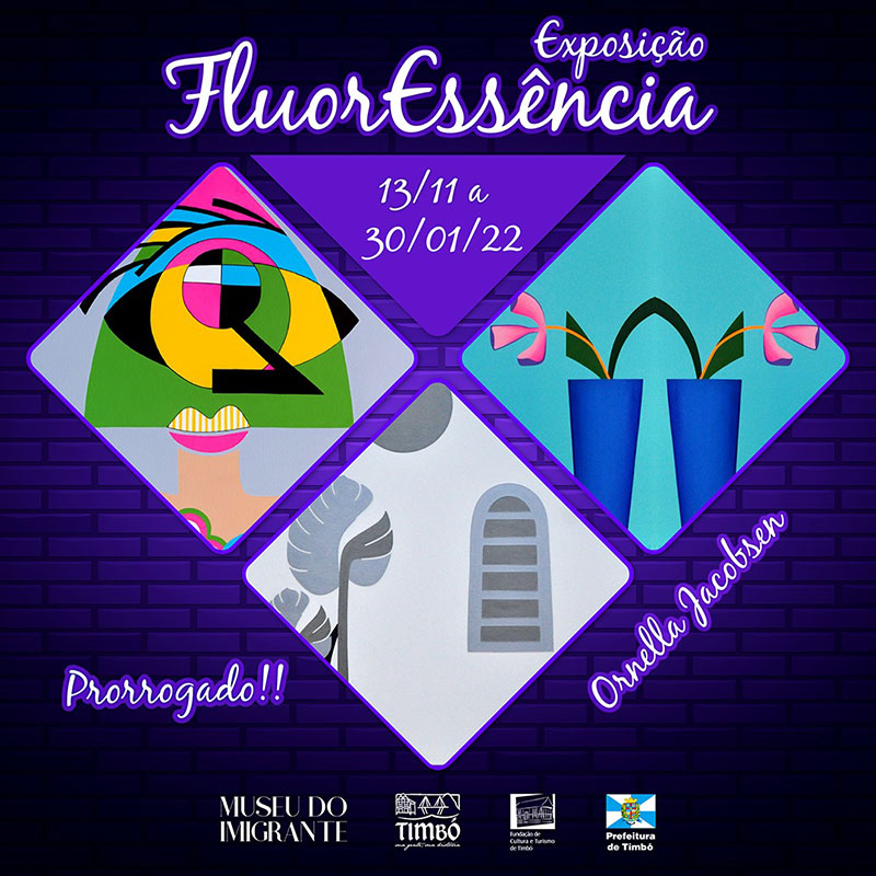 A exposição “FluorEssência”, com obras da renomada artista plástica Ornella Jacobsen, tem sido um sucesso de público desde que foi aberta em 13 de novembro. Por isso, o Museu do Imigrante decidiu estendê-la até o dia 30 de janeiro. Ela está na Galeria Max Hartmann, anexa ao Museu do Imigrante de Timbó, e estava prevista para se encerrar em 19 de dezembro.