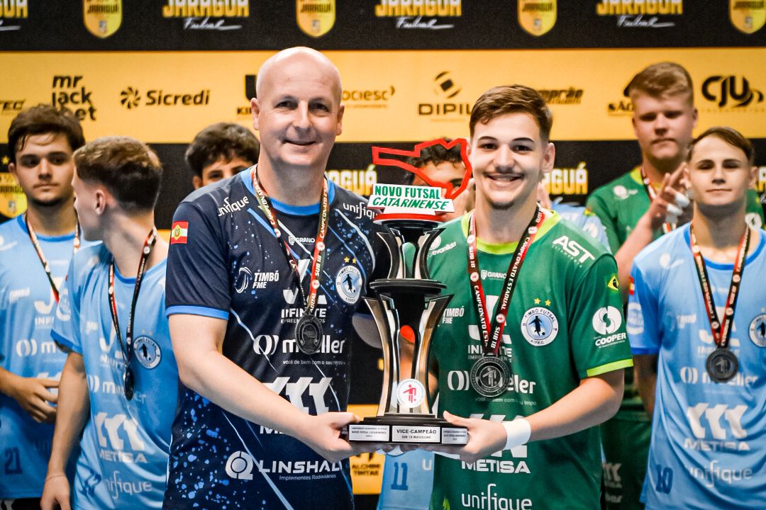 A medalha de prata conquistada em Jaraguá do Sul se junta a medalha de ouro que foi conquistada em Camboriú na última quarta-feira (18), reforçando o local de destaque da Associação Timbó Futsal no cenário do futsal catarinense de base, chegando nas duas finais dos campeonatos que disputou em 2024.