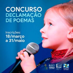 O Concurso de Declamação de Poemas de Timbó está de volta e com inscrições abertas para a sua 12ª edição. O concurso é uma realização da Fundação de Cultura e Turismo, através do Museu Casa do Poeta Lindolf Bell, com apoio da Secretaria de Educação, Biblioteca Pública Municipal Professor Péricles Prade.