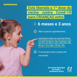 Seguindo as orientações do Ministério da Saúde, a Secretaria de Saúde de Timbó informa que está liberada a aplicação da vacina da Covid-19 em crianças entre seis meses de idade e três anos.