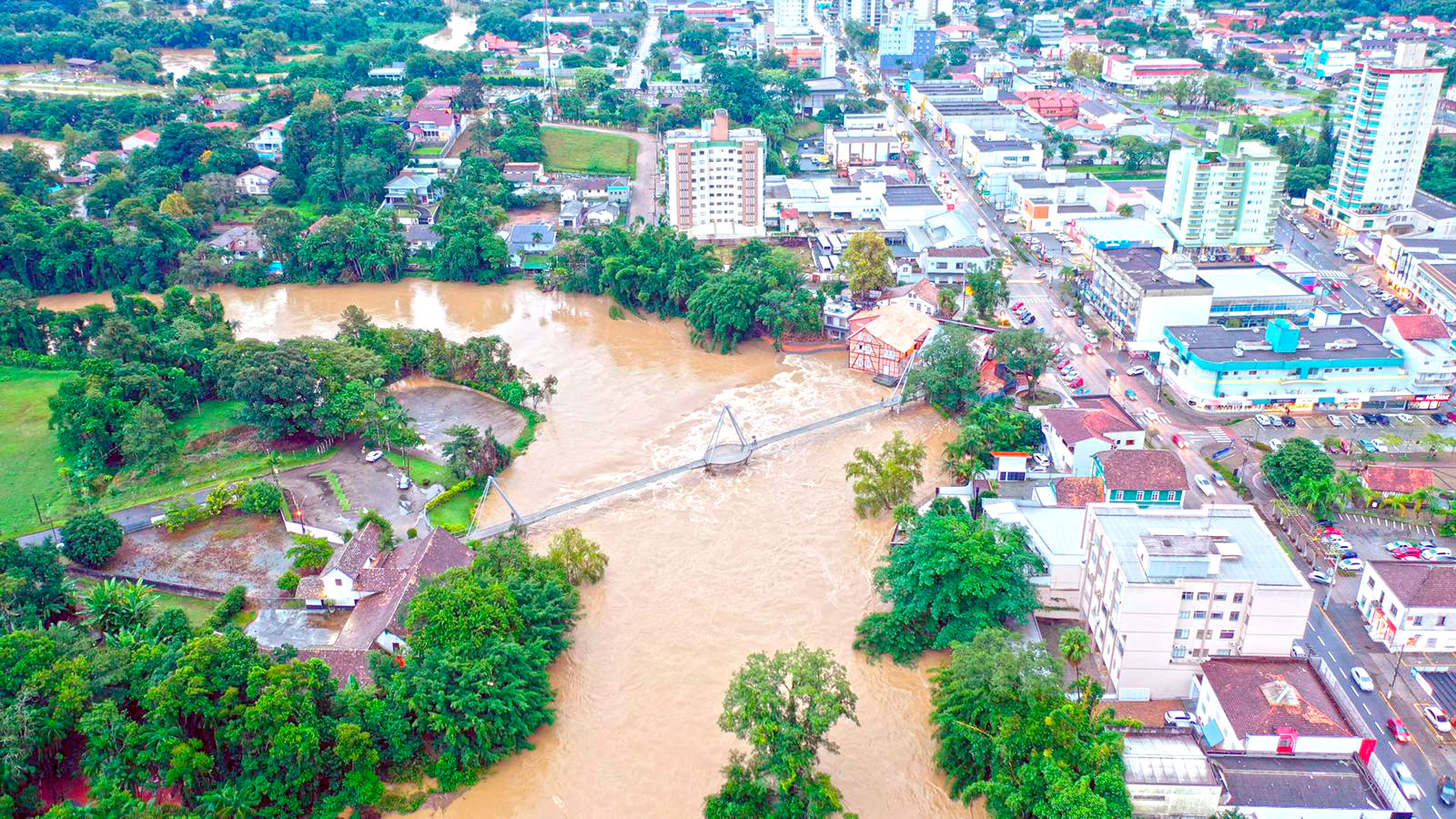 As principais ruas que tiveram trechos alagados foram Rua Haiti, Beco Guatemala, Rua Arturo Giotti, Rua Ruy Barbosa (trecho próximo ao Kifredo), Rua Carlos Strey (no Parque Henry Paul), Rua Silésia, Rodovia SC-110 (na curva próxima a Rudolph), Rodovia SC-477 (próximo ao Museu da Música) e Avenida Nereu Ramos.